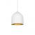 Single-lamp pendant with spun aluminum shade showcasing powder-coated finishes in contrasting hues. Exterior shade colors are black or white, with either black, silver or gold on the interior. Available in two sizes.