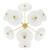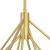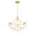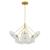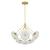 Like the sun surrounded by the planets, discs of frosted glass orbit around a fixture of antique brass-plated steel. This linear style has a knurled texture on each finial for further visual intrigue. Nine integrated LED lights. Damp-rated, although limited covered outdoor areas may affect finish.