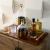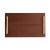 A tray of deep russet leather is bisected with a braided fishtail spine, resembling the lacing on a corset. This classically tailored style is accented with sturdy handles at either end of antique brass. Finish will vary.