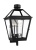 The Hyannis four light outdoor wall fixture in textured black by Chapman & Myers has a classic copper lantern profile with top and bottom glass panels. Assembled with an overlapping metal frame which is accented by rivet details. Each light has a historically inspired spun metal chimney cap. The sconces are supported by a traditional bent metal architectural bracket.