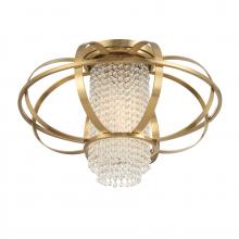 The Savoy House Idlewild 1-light ceiling flush mount boldly, beautifully combines the elegant and the edgy. A sleek metal cage structure surrounds a central column featuring rows of clear crystal beads that will look glamorous whether the light is on or off. Finished in Warm Brass. Idlewild is 13.25" in height and 20" in width. Uses one standard size bulb of up to 60 watts. The bulb is not included.