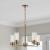 right arrow Romance Copy: The blend of styles (modern, industrial and chic) is incorporated beautifully into the design of the Intersection chandelier. The cylindrical clear glass shades showcase vintage filament bulbs for a touch of nostalgia. The luster of the rich, burnished bra