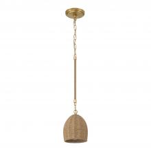If cozy, paired-back, and relaxed style defines your home interior choices, the textural Jace pendant light is what you have been looking for. The natural warmth of organic Jute has a light and airy feeling that adds architectural interest to any space. The downward-facing rod is accented with wrapped Jute with a gold finish, creating a beautiful tone-on-tone look. This versatile collection seamlessly blends in modern, coastal, and even traditional styles. Bulb included.