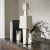 Ancient totemic forms inspired a modernist sculpture of chiseled ivory riverstone composite. Each shape combines to create a human-like figure anchored to a bronze steel base.
