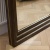 The graceful arches of doorways are reflected in an oversized tiered frame of sable oak wood. Within each carved step and along its side, an inlay of antique brass adds a subtle glimmer when the light hits, creating the illusion of depth. Designed to be hung vertically by a back cleat. Hanging hardware included. Finish will vary.