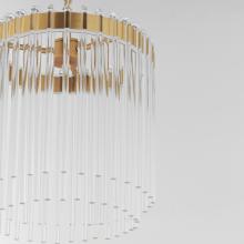 Clear glass rods elegantly curve to drape over a metal frame, encasing an integrated LED light source within. These ornamental glass rods form a luminous curtain, softly illuminated by the LEDs. The LED light source features an adjustable color temperature