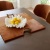 Equestrian-inspired, this handsome accessory pairs topstitched brown hide with curved antique brass handles for easy movement. Scaled at a larger size for extra impact. Finish will vary.