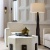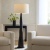 Carved details along the Kash's curvaceous base give this antiqued aluminum floor lamp an embodied energy. Reaching upward from the rounded base, this sculptural style was designed to provide maximum illumination throughout the room. It is accented with a classic white linen drum shade lined in white cotton, polished nickel hardware, and matching antiqued aluminum finial. Finish will vary.