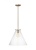 The Kate cone pendant is offered in the Satin Brass, Midnight Black, or Brushed Nickel finish. The flared, clear glass shade suspended from a linked chain defines sleek and simple, offering a chance to show-off any style bulb of your choice. The versatility of this fixture makes for a great transitional piece when changing your design or color themes.