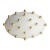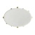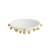We studded the surface of the bowl-shaped centerpiece with accents of antique brass steel. Cast of ivory ricestone composite, Katherine possesses a playful appeal informed by the graphic mod movement of the 1960s. The brass "dots" also serve as feet to elevate the centerpiece off the tabletop. Finish will vary.