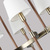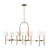 The Katie eight light billiard island chandelier in time worn brass features leather straps suspended from the chain to round out the design of this timeless series.
