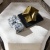 A traditional work of origami resembling a star was transformed in the hand of our designer into a sculpture of antique brass iron. Cast in a substantial scale for use on a bookcase or coffee table. Includes felt dots. Finish will vary.