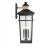 This Savoy House Kingsley 4-light outdoor wall light has a coastal-inspired lantern style with highly fashionable touches. Panes of seedy glass are accentuated by a matte black finish with brass detailing at the backplate and hood. Kingsley is 28" in height, 11.5" in width and extends 13" from the wall. It uses 4 candelabra size bulbs of up to 40 watts per bulb (bulbs not included).