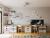 Exaggerated scale and elegant finishes define Landree’s collection of lighting fixtures;A white silk shade on the three-light flush mount fixture highlights the metal frame;Close-to-ceiling lights like this flush mount are natural choices for bathrooms,