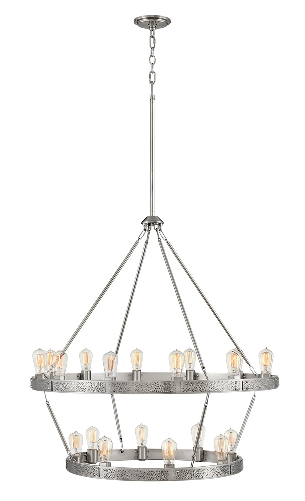 The striking hammered plates are a distinctive focal point in Everett’s design. Amplifying its unique look is the rich two-tone finish, imparting a refined elegance to this modern yet rustic chandelier. The use of vintage filament bulbs is recommended.