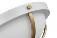 The striking Lincoln 60-7662 flush mount was inspired by an armillary sphere, consisting of a framework of elegant rings. Broad, circular bands surround the orb, and knob details in a brass hue enhance the opal glass and matte white finish for a prominent,