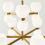 Londyn is inspired by geometric playful midcentury fixtures in metal and glass with exciting profiles and scale play. Rectangle stock metal rods and a playful layout of blown glass globes in two sizes with elegant metal cuffs create visual interest. This chandelier would be great above a dining table or casual island/nook.