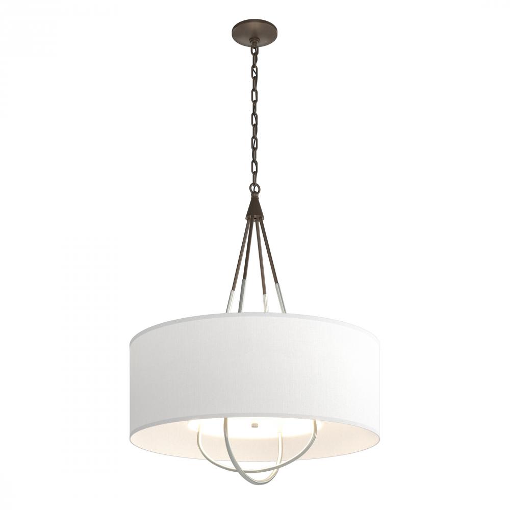 Refinement of materials and purity of line combine to make the Loop Pendant an elegant and versatile choice. Explore the many options this fixture offers—select a base finish for the canopy and chain, an accent finish for the intercrossed loops, and multiple outer shade color choices. A white inner shade gracefully diffuses the light while providing a tailored detail.