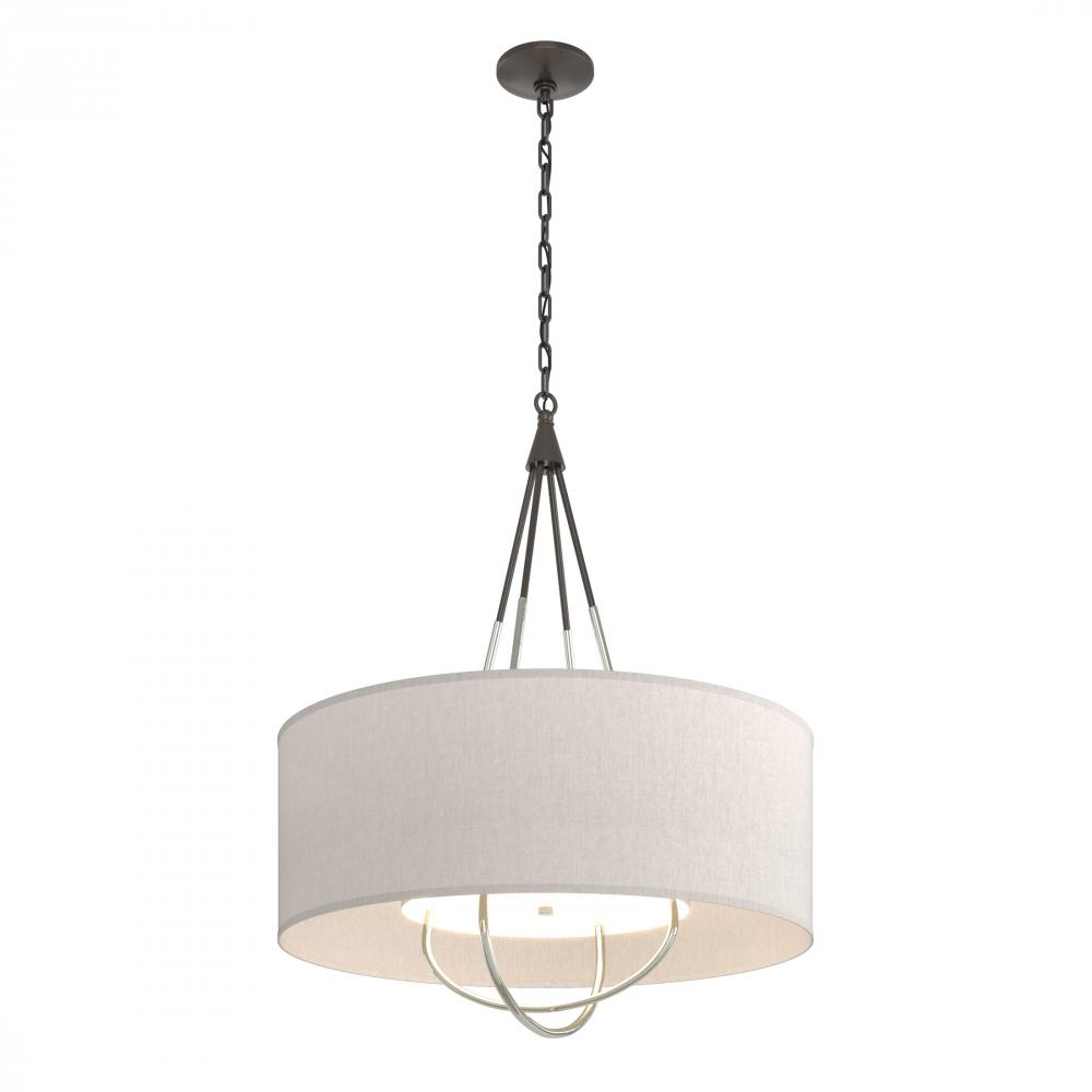 Refinement of materials and purity of line combine to make the Loop Pendant an elegant and versatile choice. Explore the many options this fixture offers—select a base finish for the canopy and chain, an accent finish for the intercrossed loops, and multiple outer shade color choices. A white inner shade gracefully diffuses the light while providing a tailored detail.