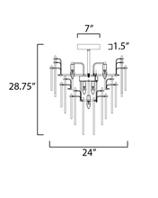 Hand-formed glass petals of Clear and Champagne-tint suspend from a tiered frame of gold and accented with petals of solid metal finished in Gold Leaf. Numerous candelabra sockets are strategically placed within the fixture to create glimmer and elegance t