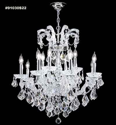 In the tradition of European Ballrooms and mansions of days gone by, these "Grand" Chandeliers are lavishly trimmed with beautiful Crystal pendeloques. The unique design of the Maria Theresa arms result in strength and durability. The range of our Collection is unsurpassed and includes custom sizes.