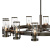 The Reeve chandelier balances sophistication with simplicity. The traditional low-profile silhouette is elevated by a wealth of elegant clear glass cylinders. Each glass is secured with a cast double-T bracelet matching the frame's luxurious finish with a corresponding metal band at the top.