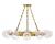 Dramatic crackled glass globes surround Coco’s timeless silhouette with unexpected, distressed detailing. Minimal framing suspended from decorative stem-to-chain uprights features a warm and inviting Lacquered Brass finish.