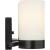 Achieve a Modern look with the Elevate Collection two-light bath and vanity. Etched glass white shades provide a striking contrast to the Matte Black finish. Fixtures can be installed with glass facing up or down for added customization.