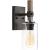 Ideal for a bathroom, dining room, hall, or foyer;Perfect for farmhouse, rustic, and urban industrial style settings;Handsome antique bronze finish with faux-painted wooden plank;Rustic clear seeded glass shade;Mount the light fixture facing up or down;Use