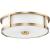 The Gilliam Flush Mount delivers an ethereal quality expressed by its slim circular silhouette finished in Vintage Brass. Etched white curved glass enhances the ceiling light’s classic form with simple elegance. The 16 inch diameter light is perfect where a larger flush mount is needed.