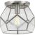 Glass panels create a shade that holds an industrial light base inside.;Geometric shapes form from the brushed nickel frame.;Inspired by modern geometric designs and contrasting elements, this bohemian-style flush mount is an attention-grabber for all the