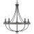 The five-light chandelier in the Gulliver Collection features arching and delicate details that curve to create an airy design. Dual toned frame color combinations in a Graphite finish with weathered oak accents The hand painted wood grained texture complements Rustic and Modern Farmhouse home decor, as well as Urban Industrial and Coastal interior settings.