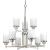 Nine-light, 2-tier chandelier features a pleasingly simple Brushed Nickel frame while visually interesting textured white linen glass are complemented by a crisp, clear edge accent. Six feet of 9 gauge chain is supplied for ceiling chain mount. Create the sophisticated feel of modern, urban living in your home - no matter where you live.