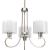 Brushed Nickel finish.;Unique translucent sheer mylar shades.;Inner glass globes provide inviting illumination.;Elegant and dreamy rich, layering effect.;Includes one 6", four 12" stems and 6 links of chain.