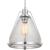 Range features a classic triangular clear seeded glass shade. The simple geometric glass is outlined with a Polished Nickel slender frame and finished with a bottom metal accent ring. Simple and stylish, this versatile style is suitable for a variety of designs, such as Modern, Farmhouse and Urban Industrial.