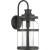 The one-light large wall lantern in the Haslett Collection features a design with intersecting linear details that surrounds clear seeded glass and finished in Black. Coastal-inspired frame is suitable to complement architecture with Farmhouse flair.