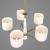 Faux white marble accents enhance an elegant gold-tone frame;White silk shades complement gold accents to create a statement-making style;Chandelier uses five 75W max. medium base lamps.;Idea for a variety of interiors;Progress Lighting Design Series, a co