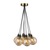 The Gem Collection with champagne glassware has a rich, translucent amber hue with a high level of clarity, allowing light to pass through while casting a warm, golden tone. The model shown is a 7 lite height adjustable cluster type chandelier.