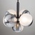 The Bolla Collection radiates unique allure through its innovative design, seamlessly combining half-acid white and half-ribbed smoke glass spheres. The chandelier's interplay of textures and tones establishes a visually striking focal point, effortlessly merging contemporary aesthetics with enduring charm. This unique glassware is complimented with a semi gloss black frame. Single light wall sconce shown. Five light mini chandelier shown [15.75" diameter]. (height adjustable with rods and built in hangstraight for sloped ceilings)