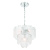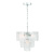 The chandelier from the Bianca collection exudes elegance with its cascading clear “Piastra” glass panels that shimmer like delicate ice sculptures. These textured glass elements are gracefully suspended from a polished nickel frame, radiating a sense of refined artistry and grace. This model can be used as a small chandelier or a close to celling semi-flushmount.