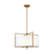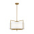 The Perno four-light shade pendant in Burnished Brass by Chapman and Myers was inspired by a vintage mid-century French sconce with a simple metal armature. The minimal cruciform structure of the metal frame is the main feature of the design. The frame outlines and supports the inner cylindrical shade. All of the assembly hardware for installing the inner shade was engineered to be hidden in order to maintain the clean and simple aesthetic of the light.