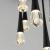 An elongated profile with piercing statement, this series of pendants feature thin black wires that support a tapered metal pendant. Recessed in this form is a high powered LED that illuminates a brilliantly faceted crystal element with etched details insi
