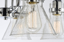 right arrow Long Description: This nautical-inspired collection features Clear Seedy glass cones suspended by a yoke frame. The clear glass offers abundant lighting and compliments the styling of the fixture. Make it a more industrial look by adding filament E26 light bulbs.