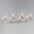 Cylinders in Clear Seeded glass on simple Satin Nickel frames or matte Black frames with Antiqued Brass socket covers. Pivoting arms on chandelier allow it to direct light up or down. Use filament lamps either tubular or Edison in shape for a Coastal or In