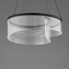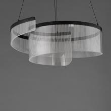 Composed of gently curving aluminum channels in Matte Black that supports a patterned translucent acrylic arranged in groups of vertical stripes, this series of pendants and coordinating ADA sconce expresses a musical quality in brilliant LED light. The wa