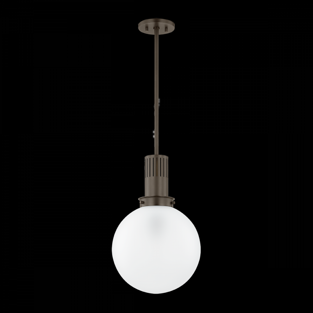 Tobias is a recognizable basic with a cool, modern feel. The oversized glass globe has been internally etched to add texture, but the real star of this pendant is the industrial-style chimney. Perforated with elongated slats, it sets the tone with either a Patina Brass or Bronze finish. This modernized retro staple comes in two sizes to suit your spatial needs.