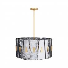 IMPOSING AND ELEGANT, THE TUSCANY CHANDELIER IS CONSTRUCTED IN A TRIANGULAR GEOMETRY OF ABSTRACT GLASS SHIELD SHAPES. THE SMOKY, LUSTROUS SLUMP GLASS IS FIXED TO DRUM-STYLE FRAMEWORK IN ANTIQUE-BRASS IRON. THE RESULT IS A COMPOSITION RESEMBLING A JEWELRY BANGLE. EACH TEXTURED GLASS PLATE IS ORNAMENTED WITH ANTIQUE BRASS IRON THAT MIMICS THE SHAPE OF THE GLASS. THE FIXTURE IS FITTED WITH A SUSPENSION PIPE, ALSO IN ANTIQUE BRASS IRON. DAMP-RATED, ALTHOUGH LIMITED COVERED OUTDOOR CONDITIONS MAY AFFECT FINISH.