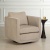 Curves Abound Creating Style And Ease, Featuring A Rounded Frame That Cradles The Base And Rests On A Hidden Swivel. Fully Upholstered In A Rich Textured Chenille In Porcelain.