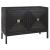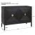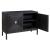 A Contemporary Geometric Two Door Accent Cabinet, Constructed From Deeply Grained Fir Wood Finished in A Dark Ebony Stain, Accented with Brushed Brass Hardware. Has One Fixed Interior Shelf.