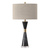 Mid-century Flair is Added to This Design Featuring An Hourglass Shaped Base Constructed of Solid, Black Marble and is Accented with Stainless Steel Details Finished in A Plated Gold and A Thick Crystal Foot. The Oval Hardback Drum Shade is A Beige Linen Fabric with Vertical Slubbing.